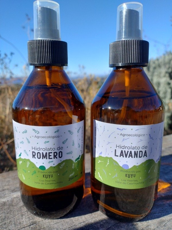 El mismo es agua con microparticulas de aceite esencial de romero, el cual obtenemos por medio de una destilación por arrastre con vapor de agua 💧⚗️.